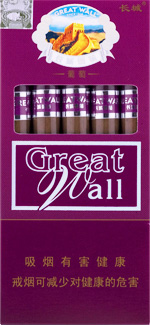 长城(金南极葡萄)以独特的葡萄风味为特色,采用紫色纸盒五支装设计,既时尚又彰显个性。每一支都蕴含着丰富的葡萄甜香,伴随着微妙的果酸调,营造出一种清新而不失醇厚的独特体验。其香气柔和、口感和谐,葡萄的甜润与雪茄的韵味完美融合,带来既优雅又不失个性的吸食感受,是追求别样风味爱好者的理想选择。